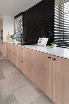 In deze realisatie stond het creëren van een rustig en functioneel totaalbeeld centraal. Zowel de keuken als het badkamermeubel werden op maat ontworpen, met aandacht voor indeling, gebruik en afwerking.